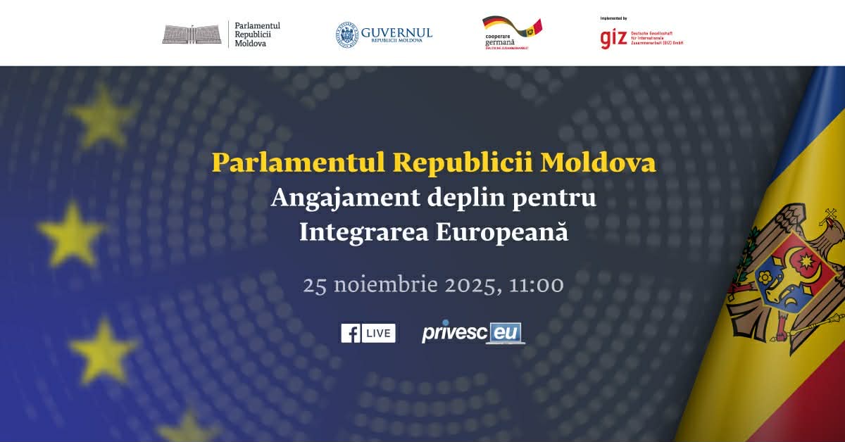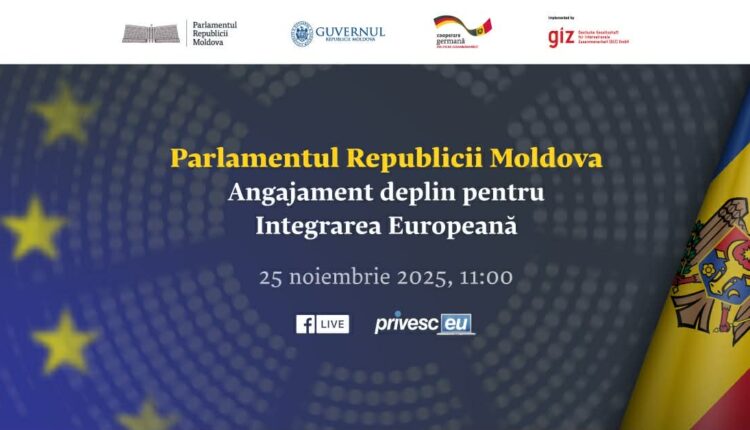 Chișinău, 21 noiembrie 2025 – Parlamentul Republicii Moldova, prin Comisia pentru Integrare Europeană, și Biroul pentru Integrare Europeană organizează pe 25 noiembrie 2025 conferința „Parlamentul Republicii Moldova – Angajament deplin pentru Integrarea Europeană”, o platformă de dialog interinstituțional menită să consolideze rolul Legislativului în procesul de aderare la Uniunea Europeană.